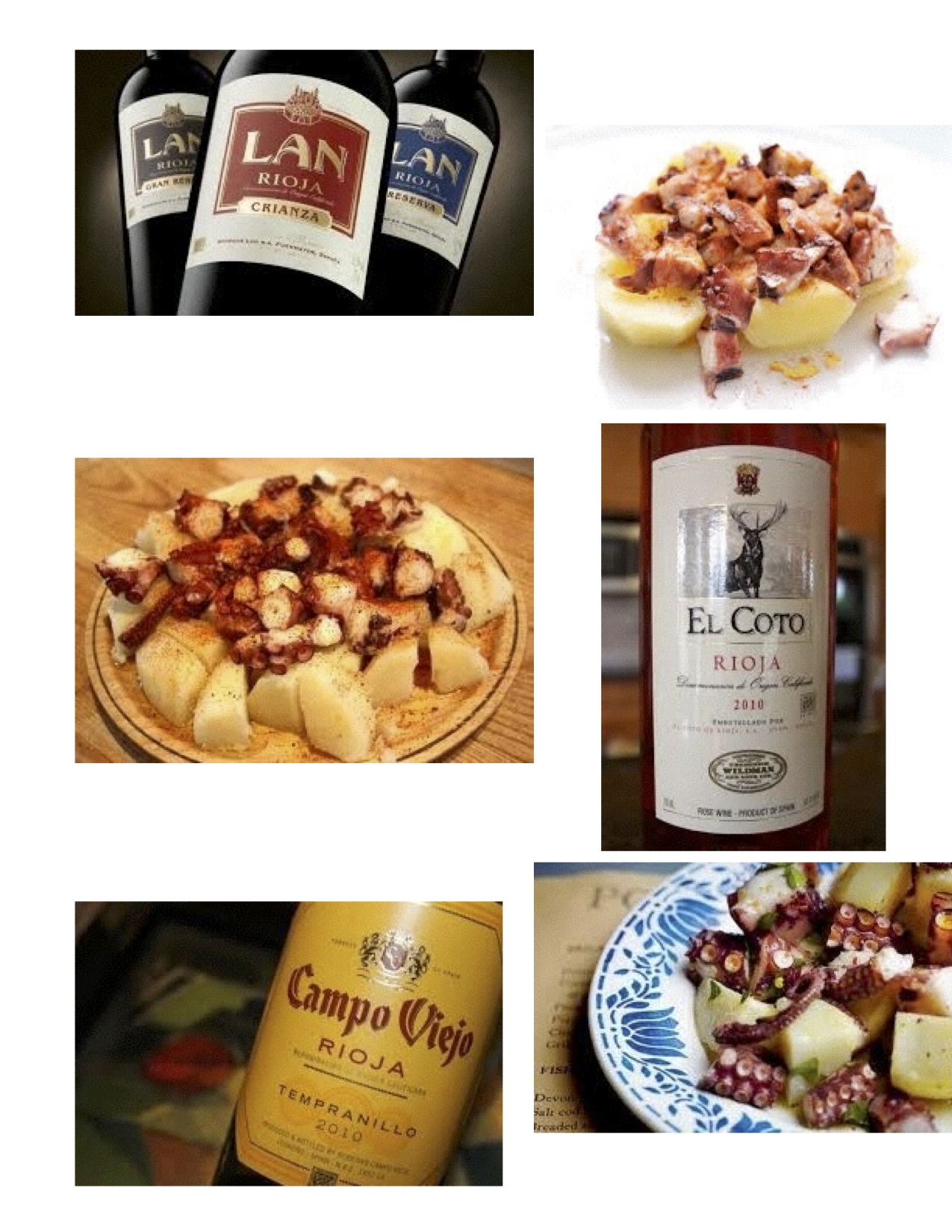 El vino que complementa un platillo con pulpo es un buen vino de Rioja.Confit de pulpo